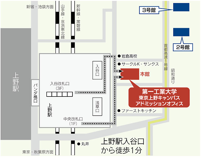 | 最寄り駅 | JR山手線・京浜東北線・宇都宮線・高崎線・常磐線上野駅入谷口徒歩1分 東京メトロ日比谷線上野駅徒歩1分 東京メトロ銀座線上野駅徒歩1分 |
